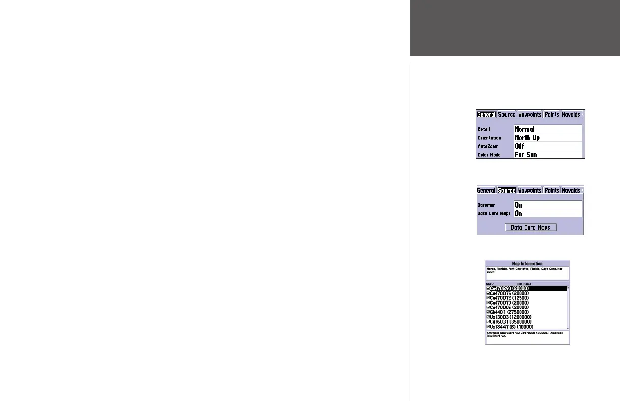 Data Card Maps— On/Off: turns all optional BlueChart/MapSource data loaded on the data card
