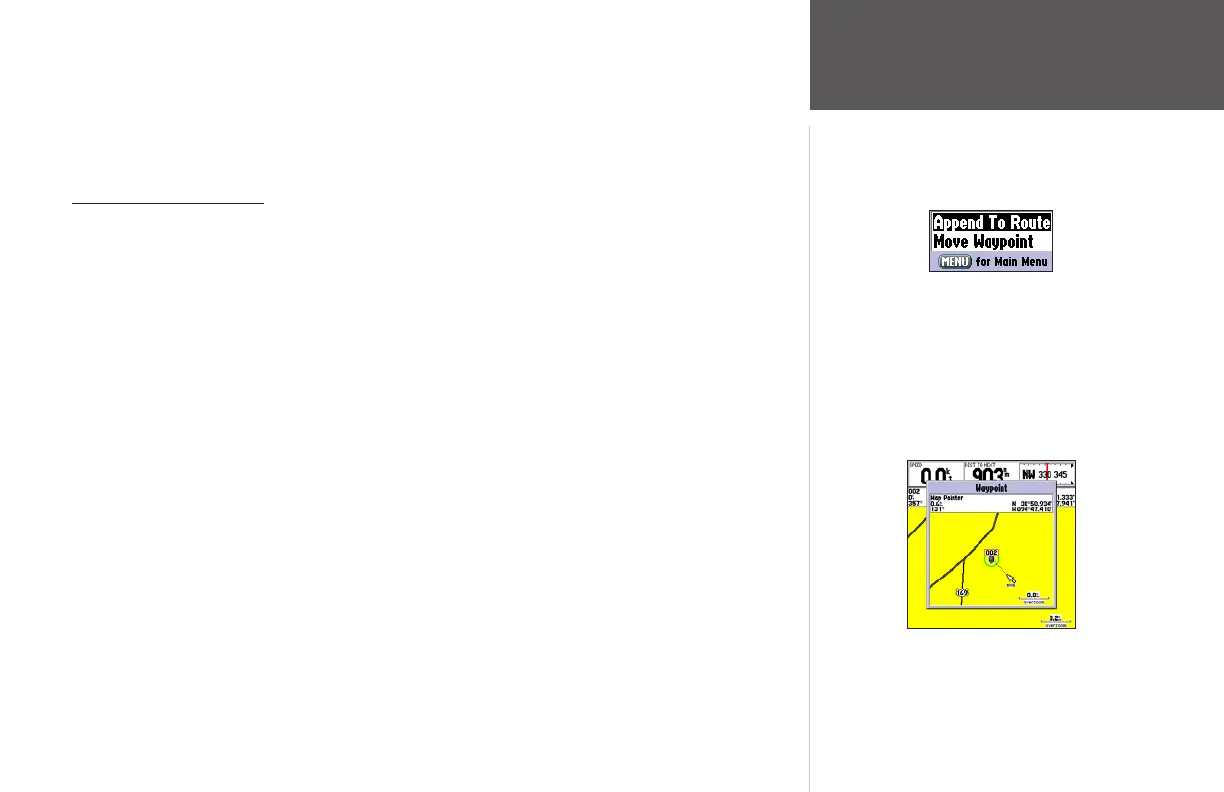 Waypoint Pages: Append To Route and Move Waypoint. (these menu options also appear on the