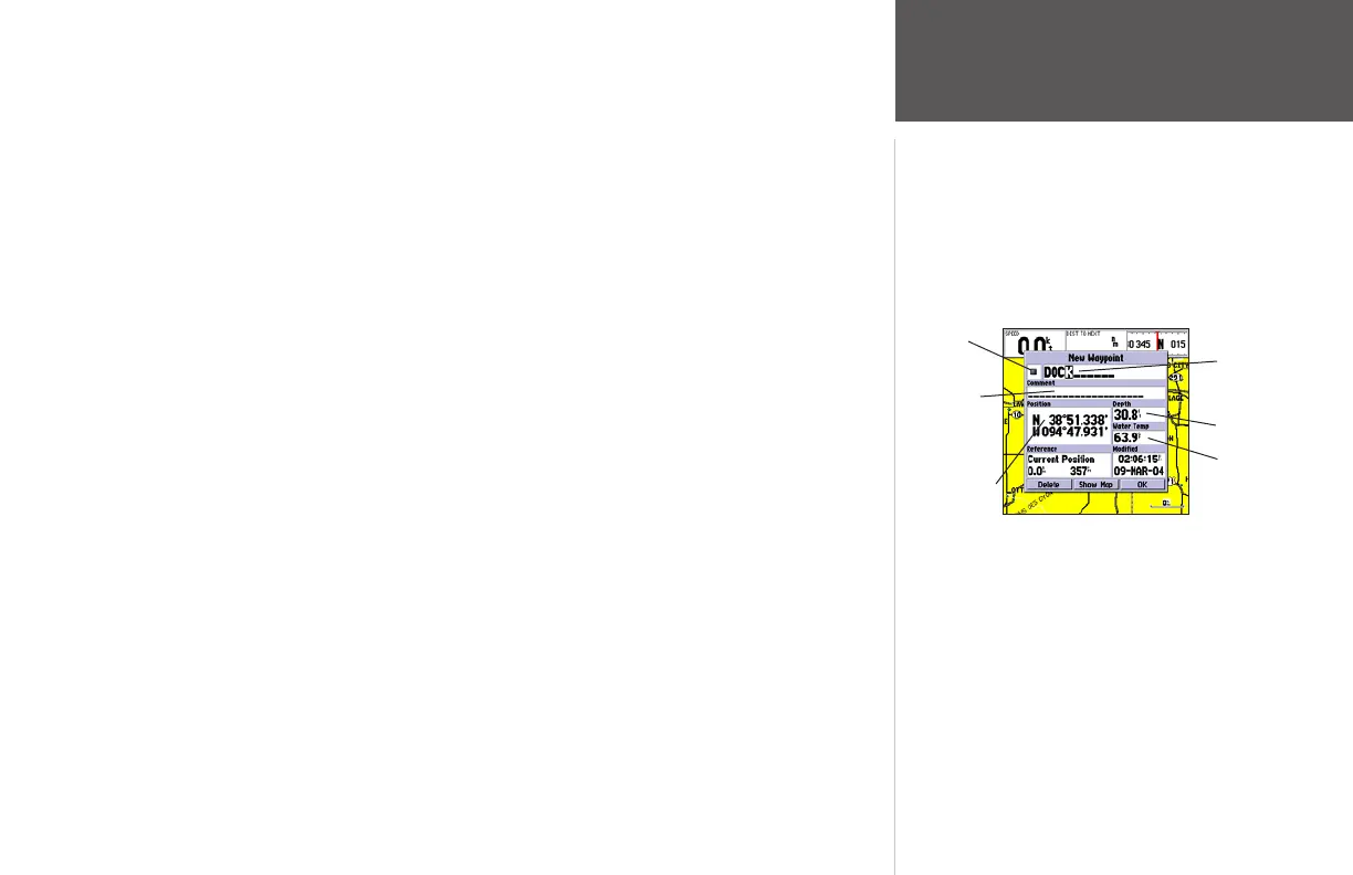 tion of the map cursor (in relation to the waypoint’s original position), and a description of where the