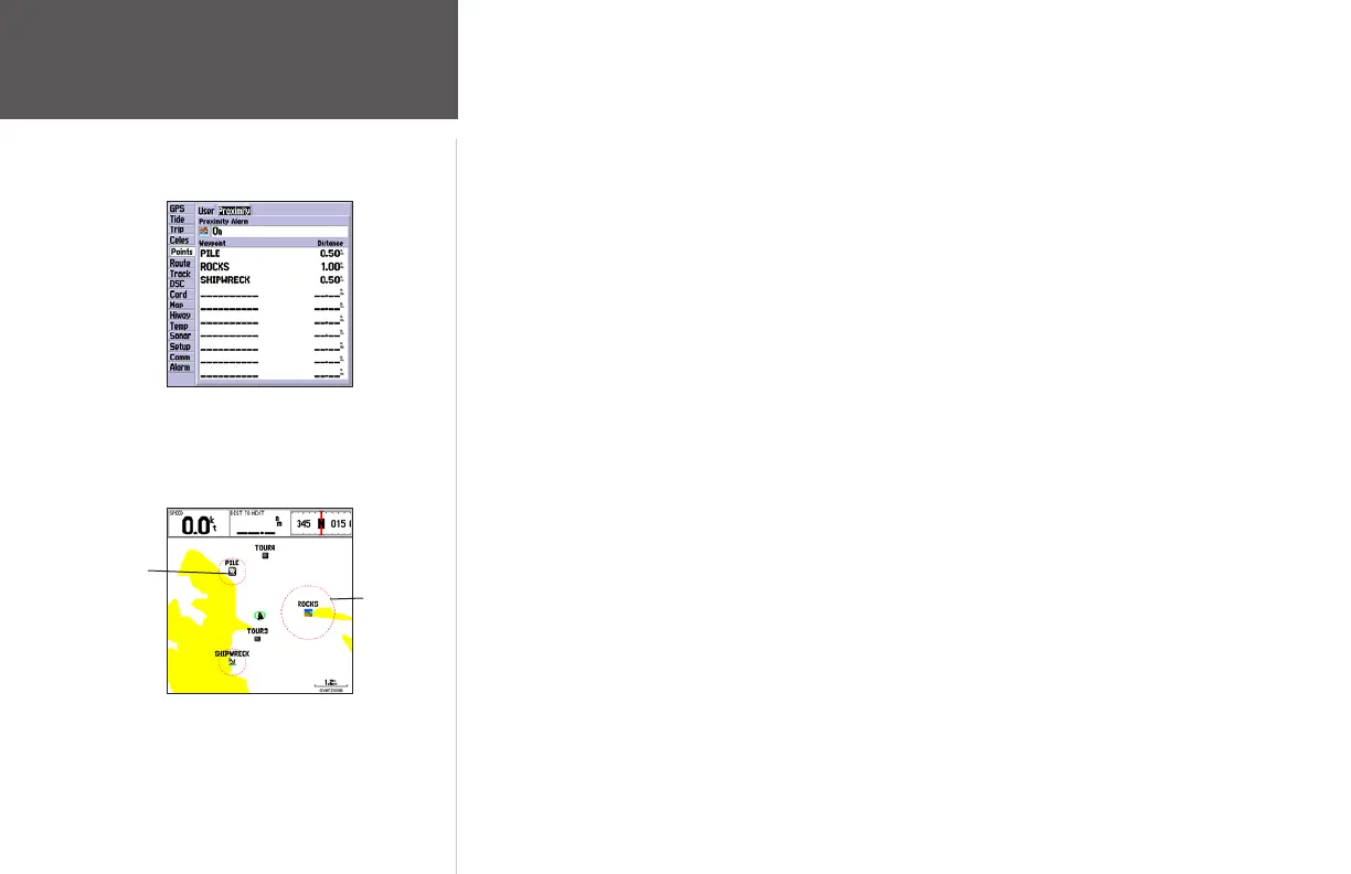 • Delete Alarm— removes selected waypoint from proximity list.