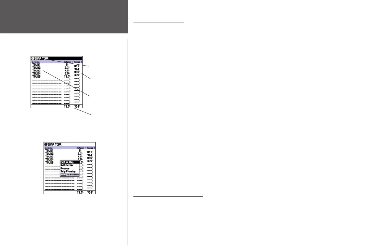 By pressing MENU on the Route Review page, the following options are available: Edit on Map, Add
