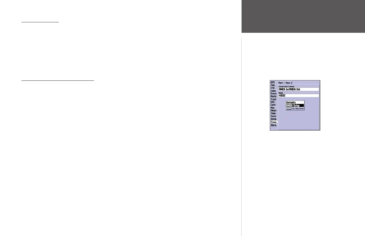 RTE), and the Garmin Proprietary sentences. See page 96 for more information on wiring and NMEA