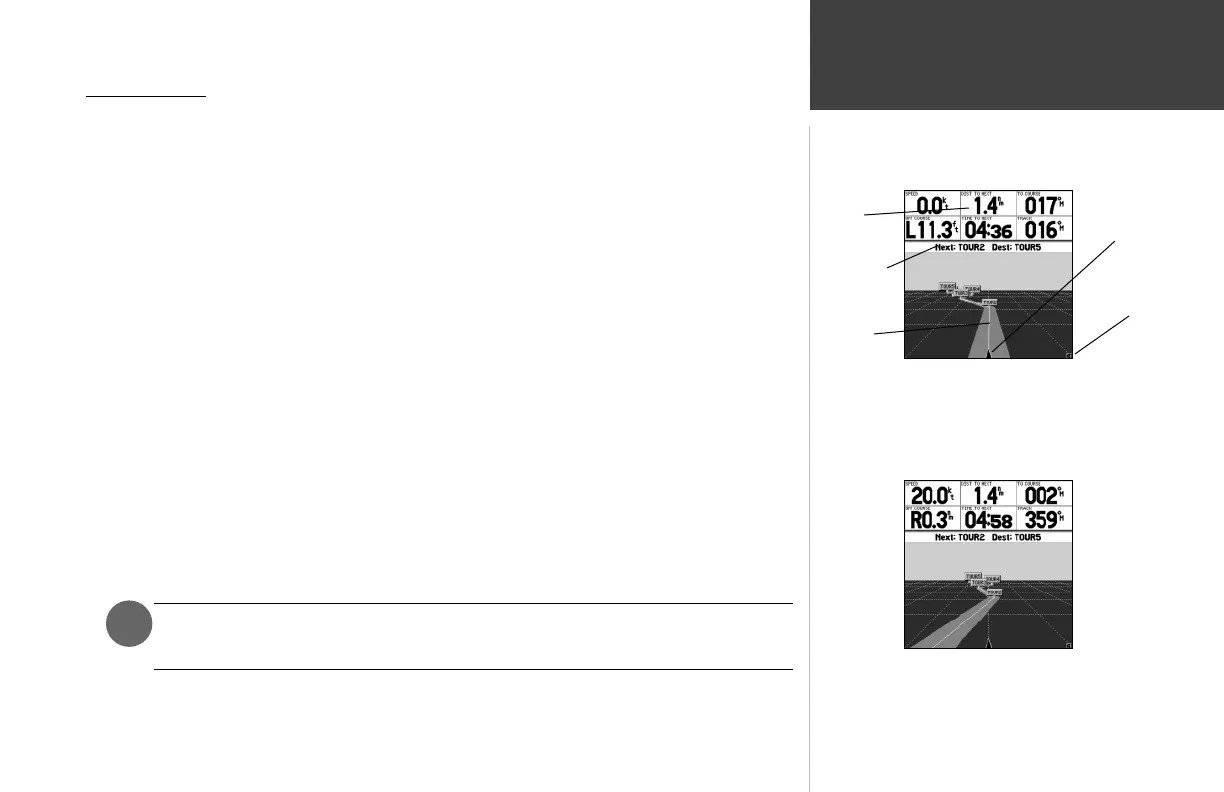 guidance to your waypoint on a moving graphic “highway.” Your present position is at the bottom
