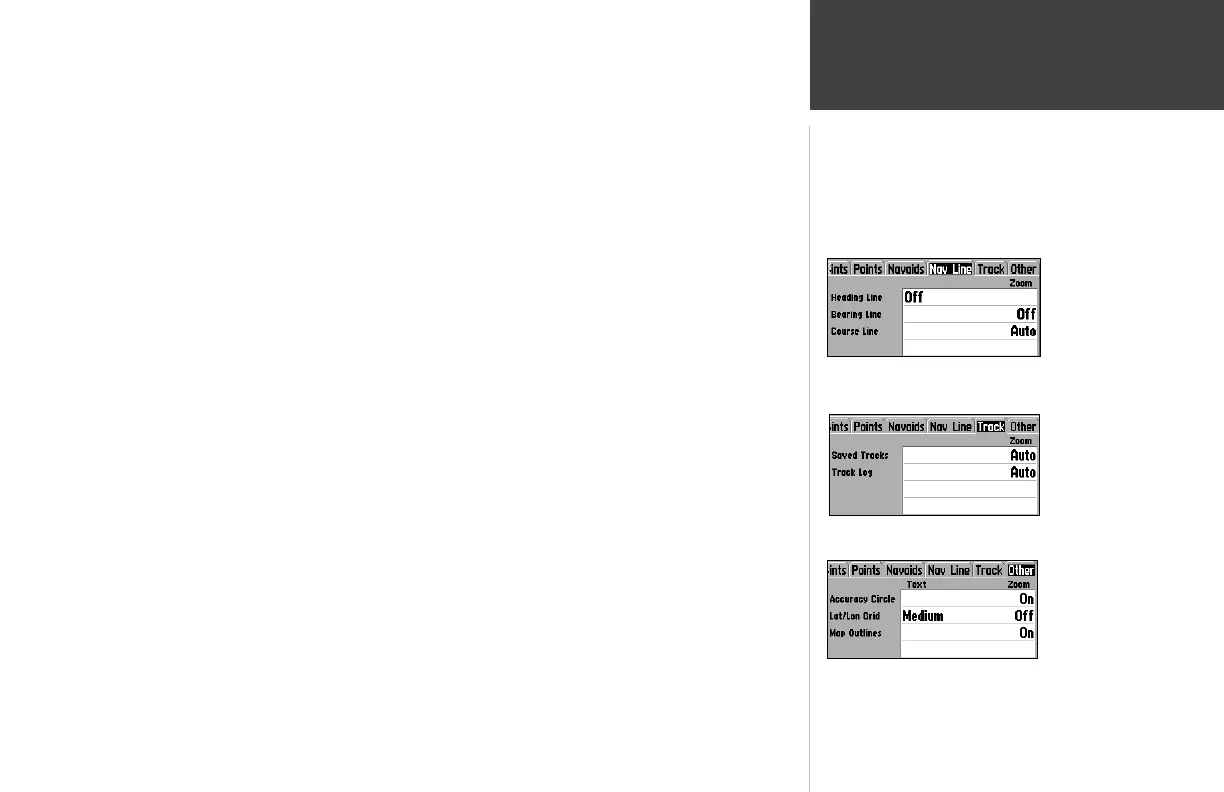 Map Outlines— On/Off: toggles the coverage boxes for BlueChart/MapSource data “On” and “Off”.