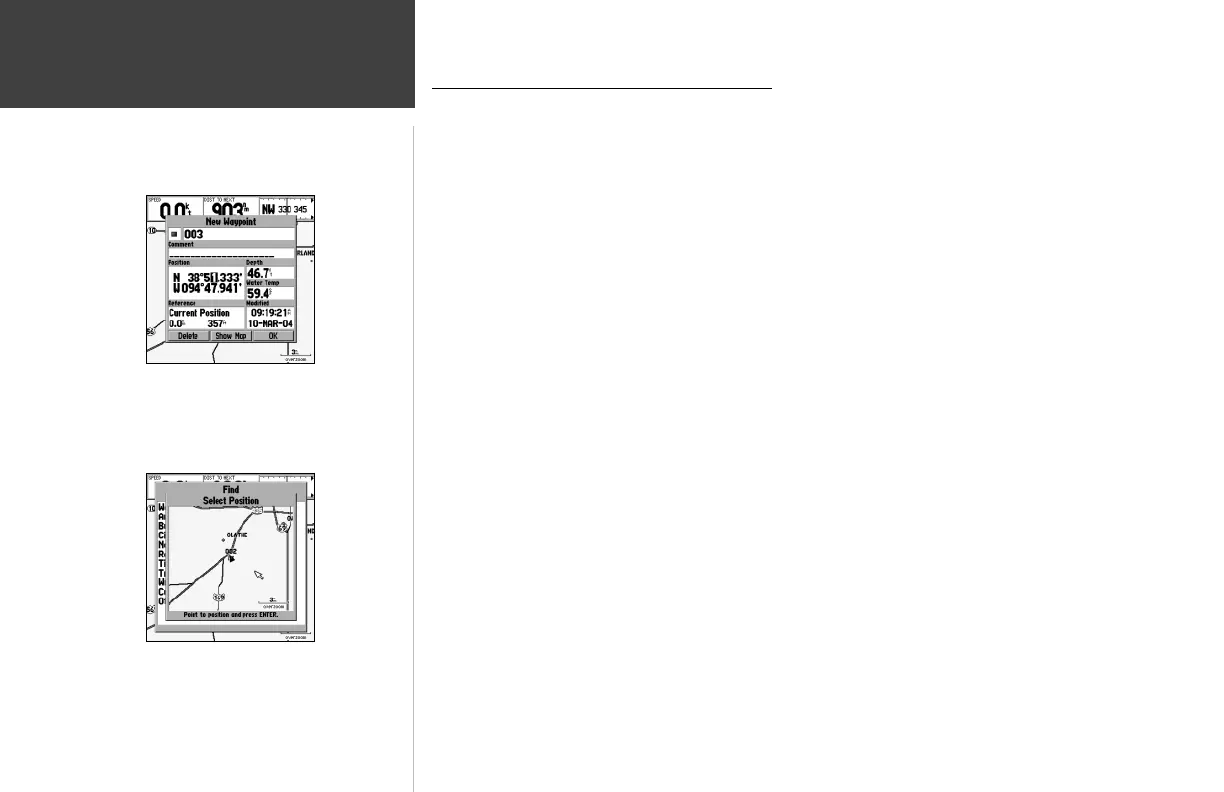 of the Main Menu. This method can be useful for creating a waypoint at a specifi c latitude/longitude