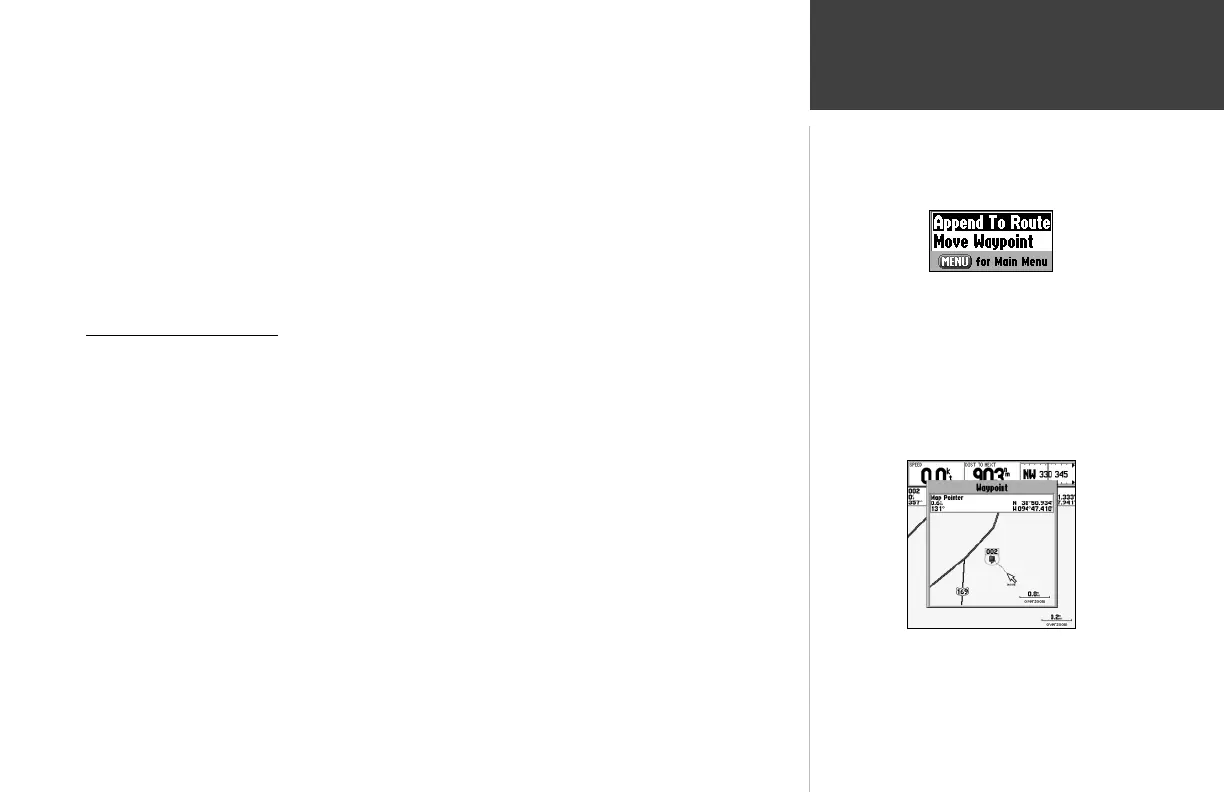 Waypoint Pages: Append To Route and Move Waypoint. (these menu options also appear on the