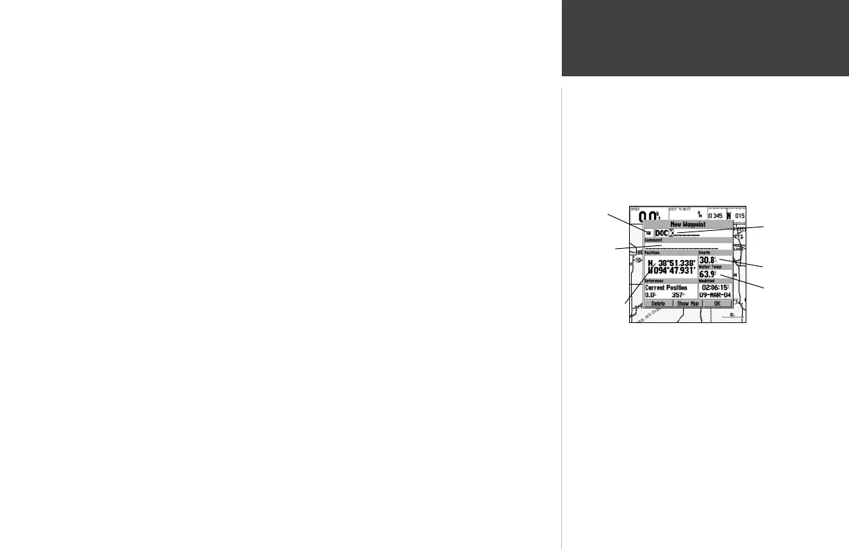 position of the map cursor (in relation to the waypoint’s original position), and a description of