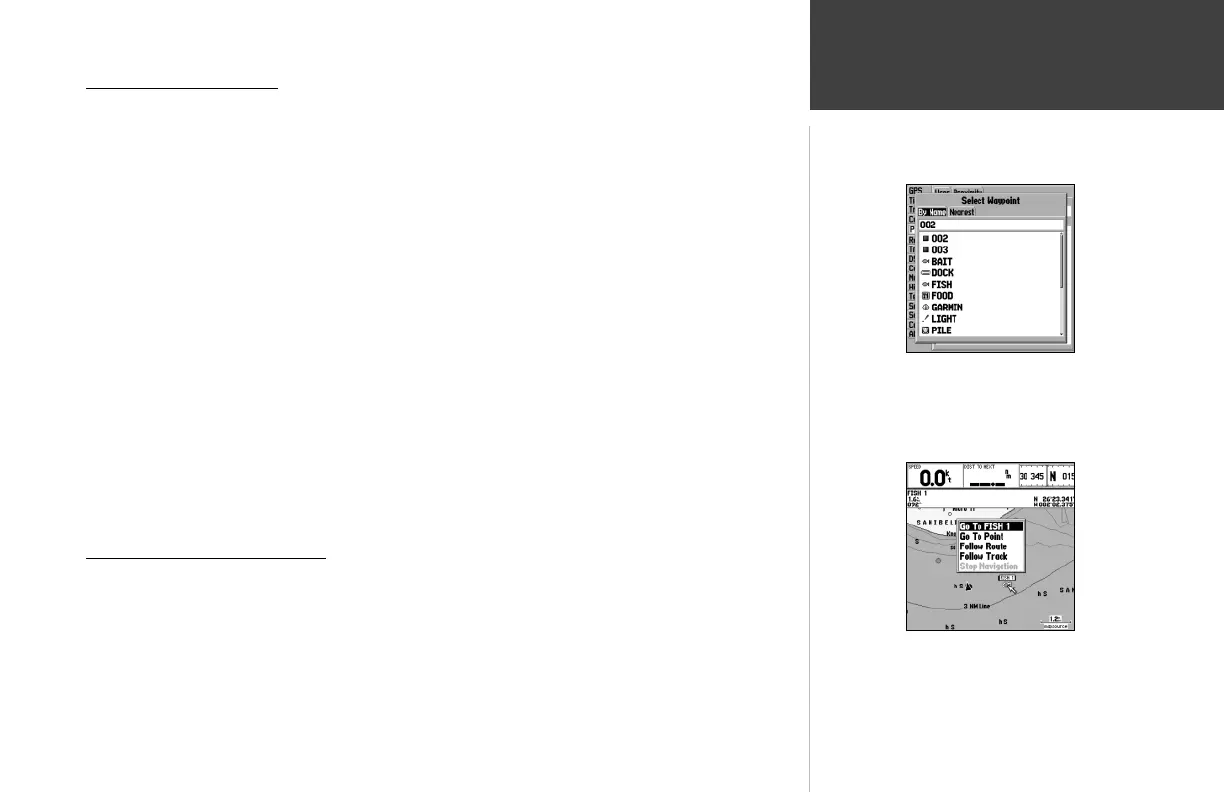 map and press NAV, ‘Go To <point name>’ appears in addition to ‘Go To Point’. The ‘Go To’ function