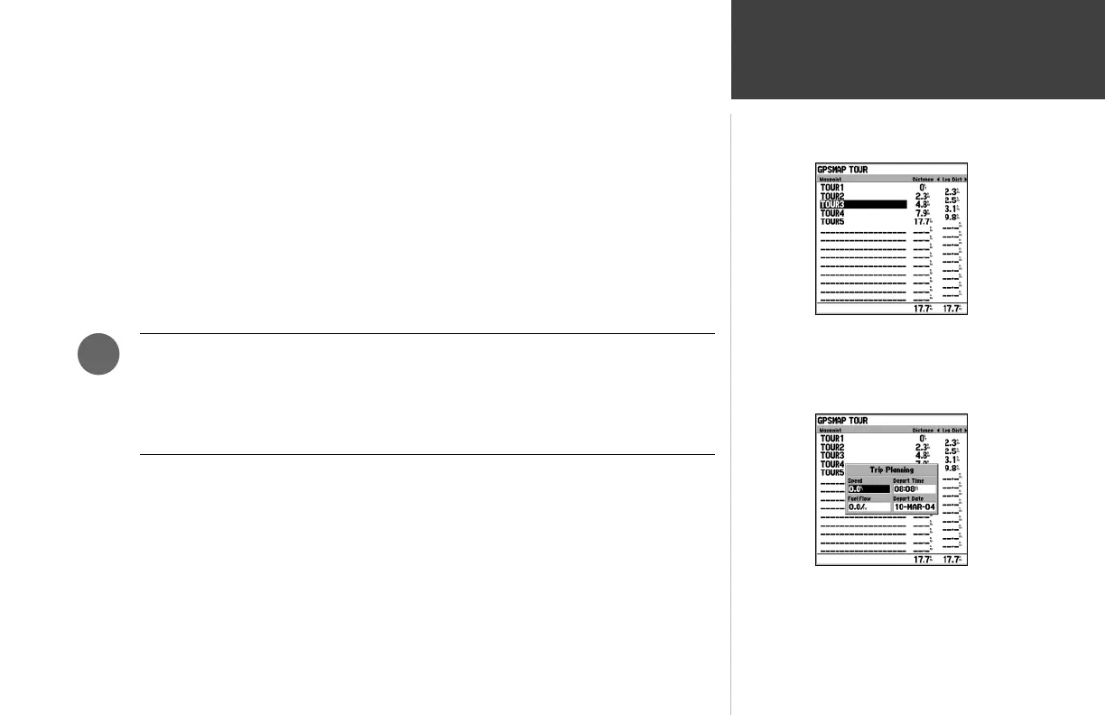 3. To enter planning information (from the Route Review Page only), press MENU and select ‘Trip