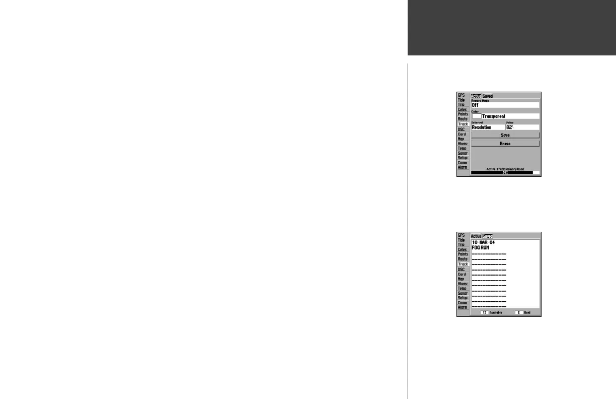 memory or start a TracBack route. See page 54 for TracBack information. The Track submenu is divided