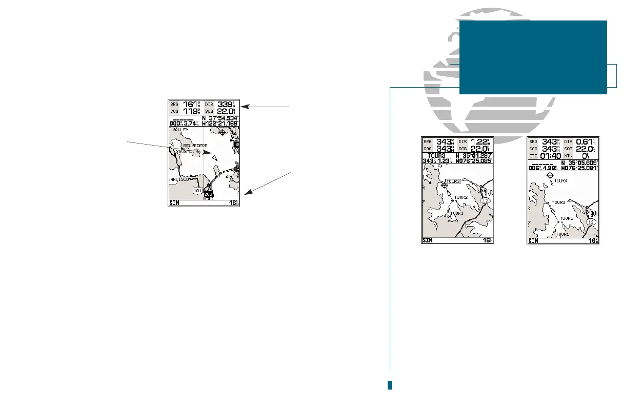 The GPSMAP 180s Map Page combines digital chartplotting with a user-selec-