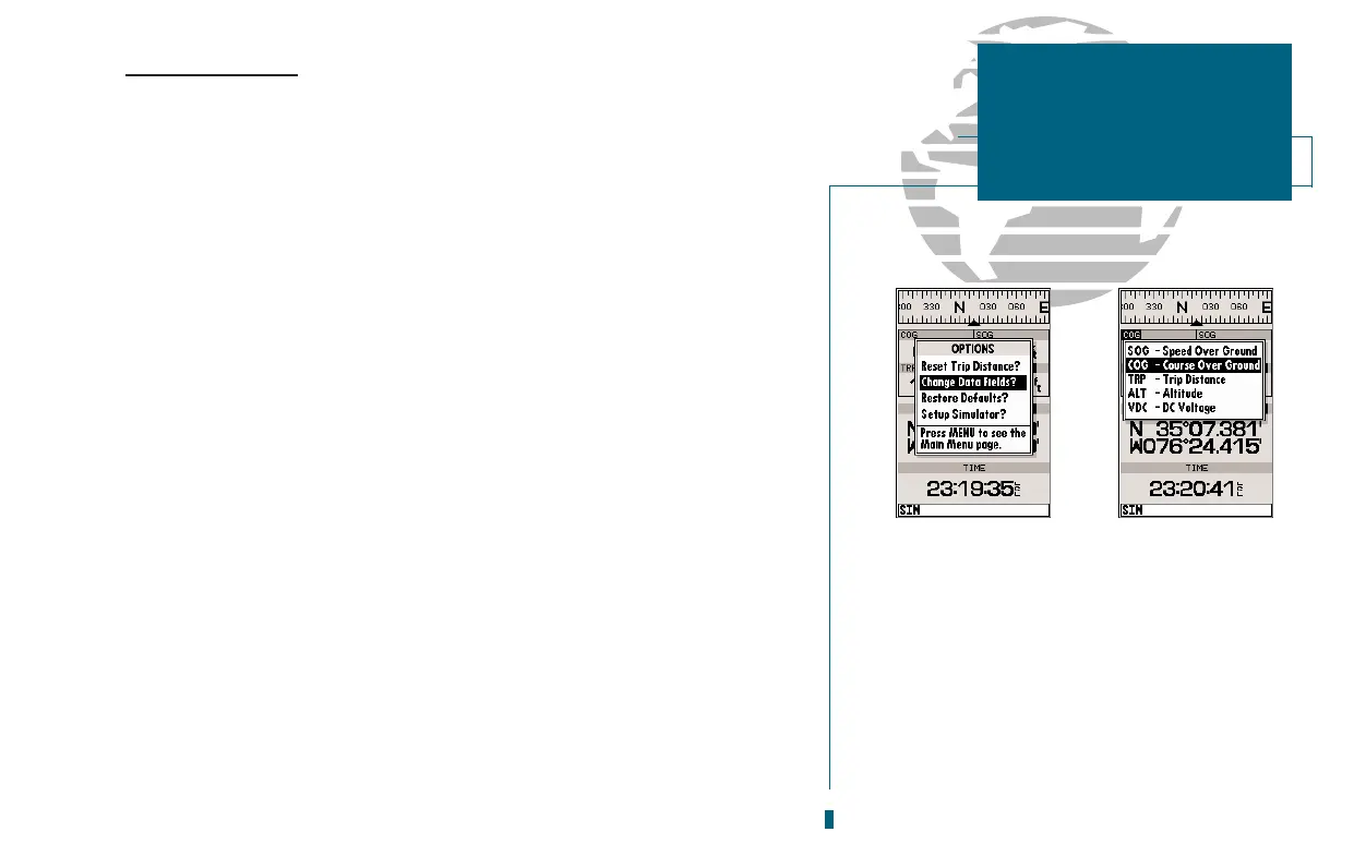 Change Data Fields? allows you to choose the data displayed in the four user-