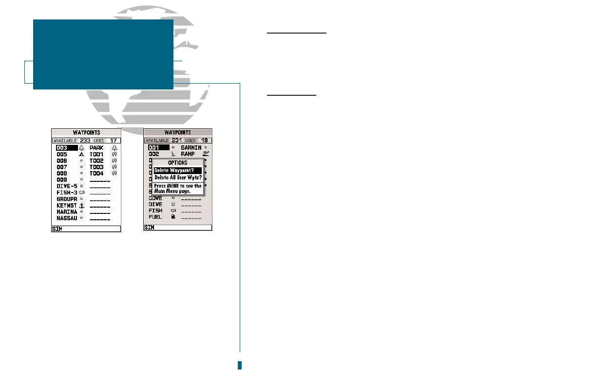 the waypoints list, you may review, edit, rename, or delete individual waypoints;