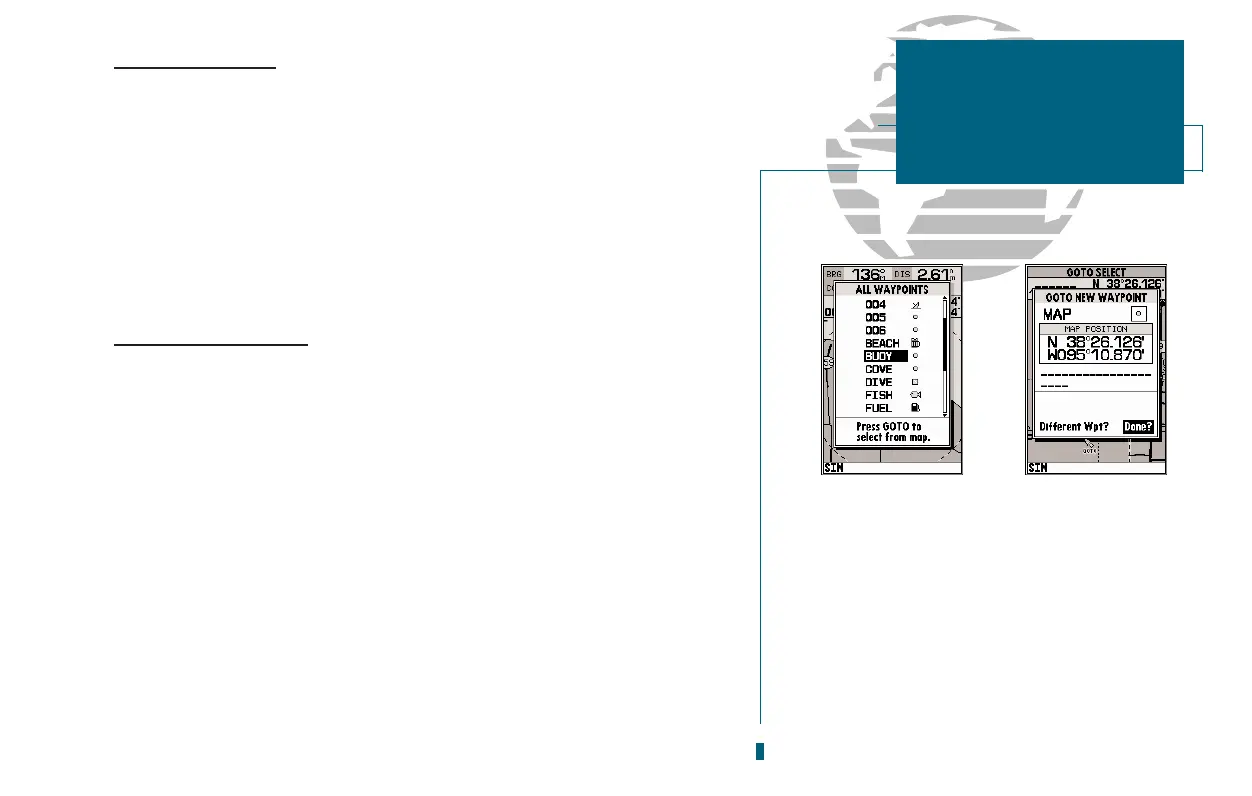 The GPSMAP 180 provides four ways to navigate to a destination: GOTO,