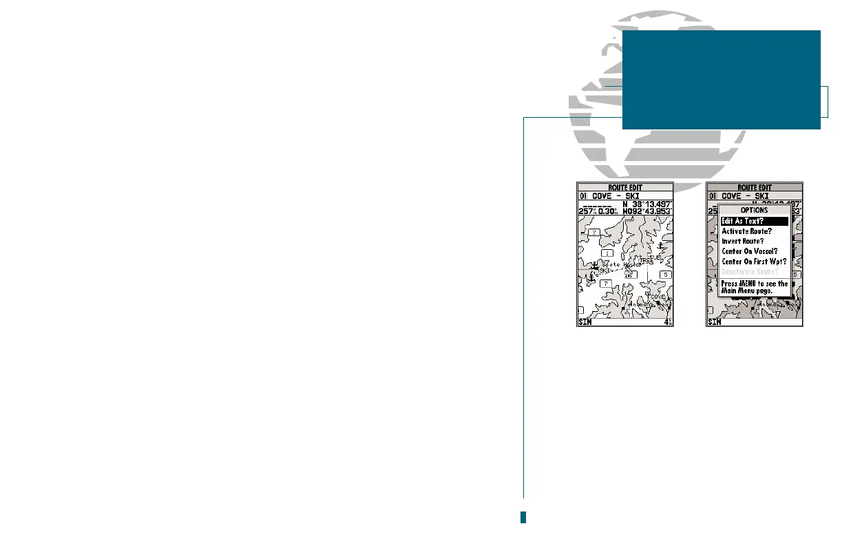 The GPSMAP 180s route edit mode also allows you to insert a new route way-