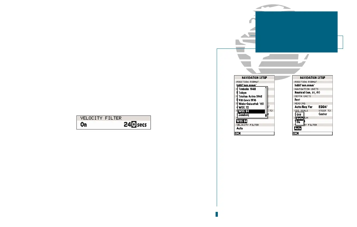 Velocity Filter allows you to select the GPSMAPs response time to changes in track