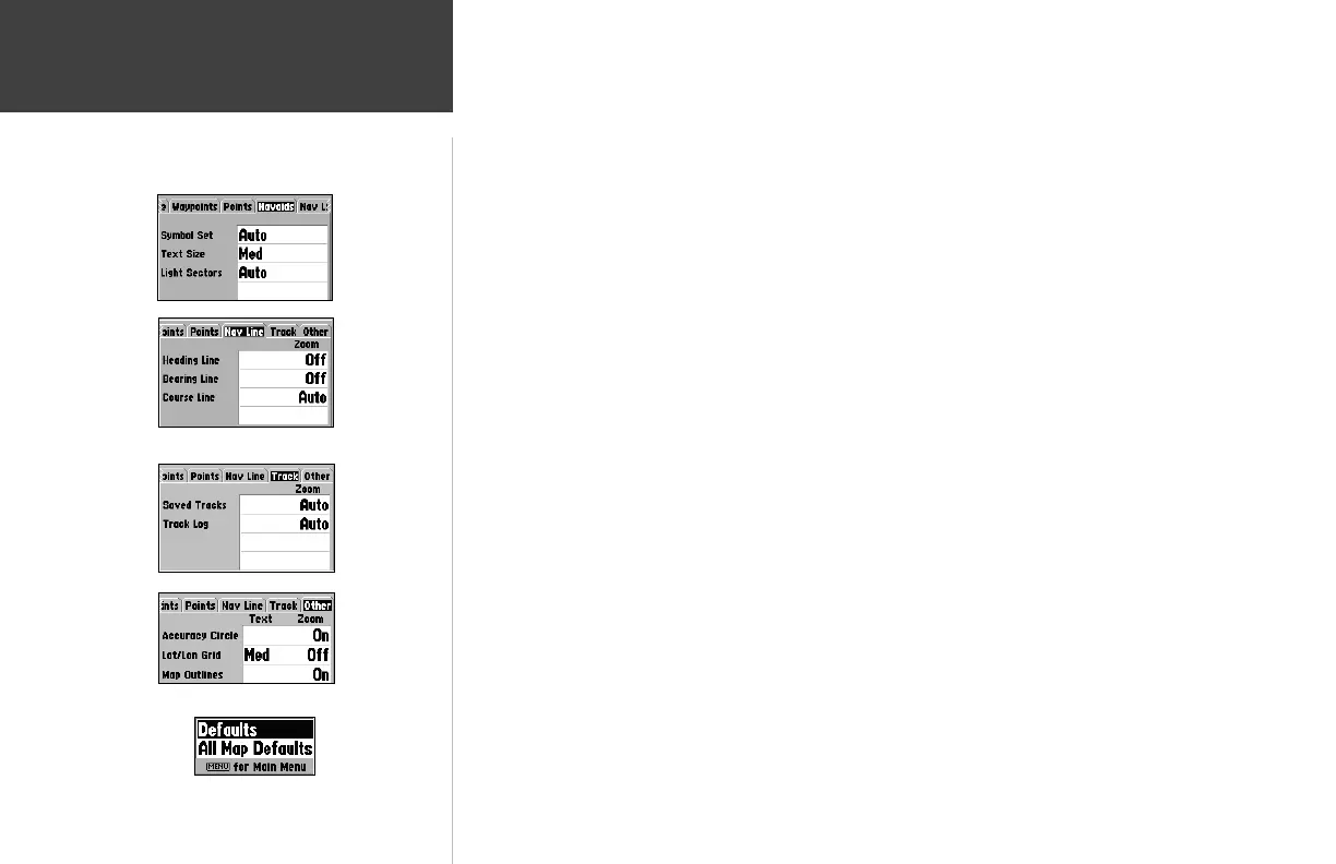 • All Map Defaults— restores settings back to factory settings for all tabs.