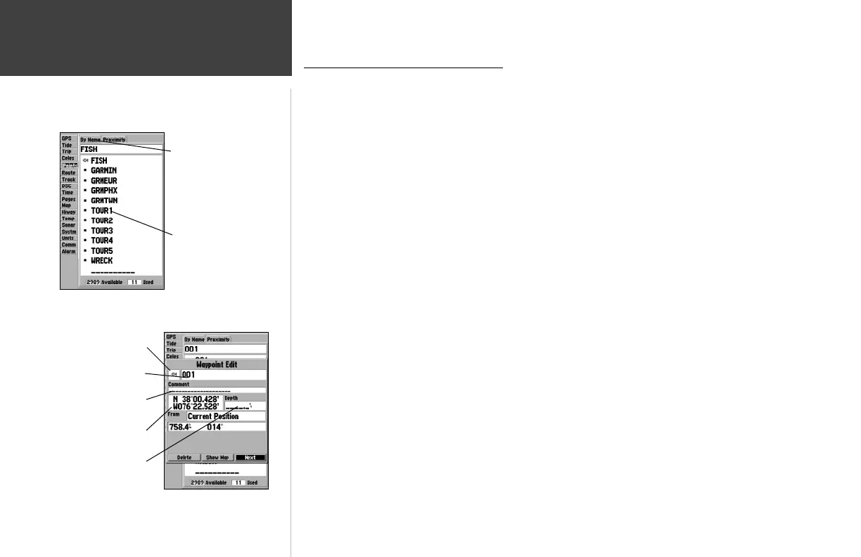 Once you have created and stored a waypoint, it may be modifi ed, reviewed, renamed, moved or