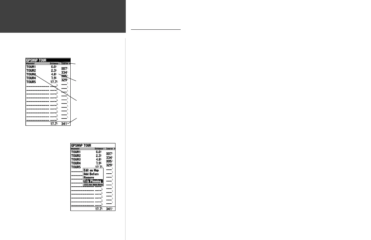 highlighted. This allows you to review each point on the route by pressing only ENTER/MARK