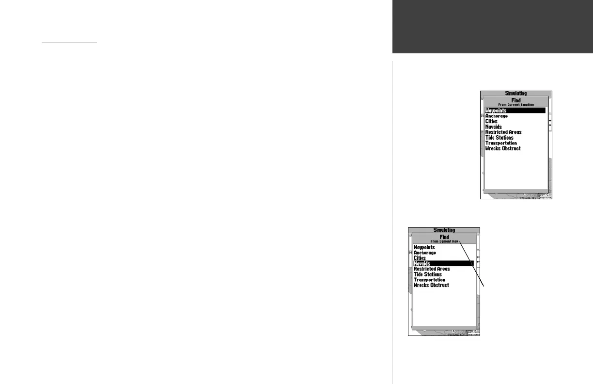 BlueChart or MapSource information loaded on a data card. By pressing the FIND key, the unit will