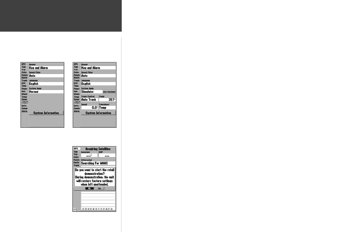 • System Mode— select from ‘Normal’ (Normal Navigation) or ‘Simulator’ (For practice ONLY)