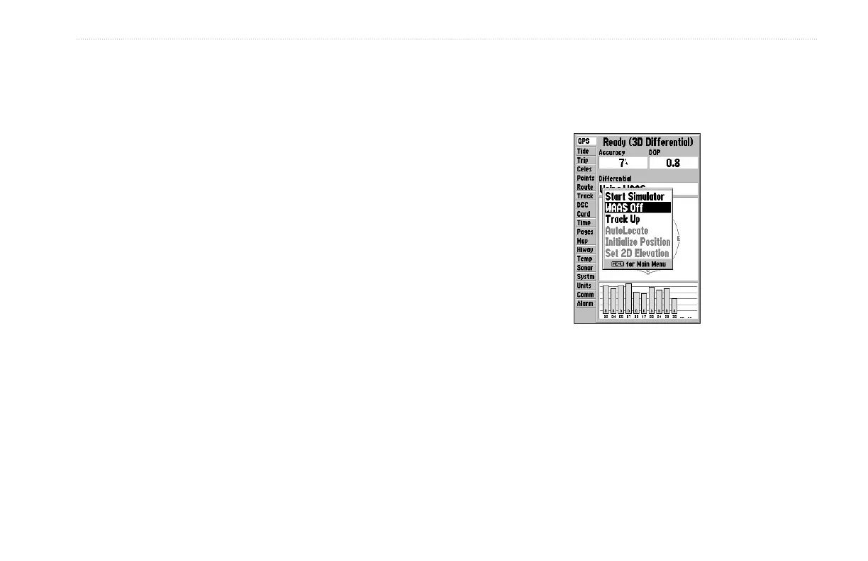 2. Use the ROCKER to highlight WAAS Off or WAAS On, and
