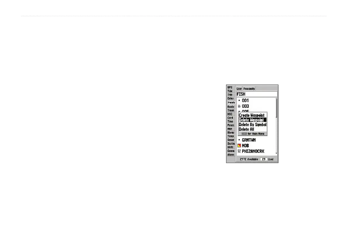 2. Highlight Delete Waypoint, and press ENTER. You can