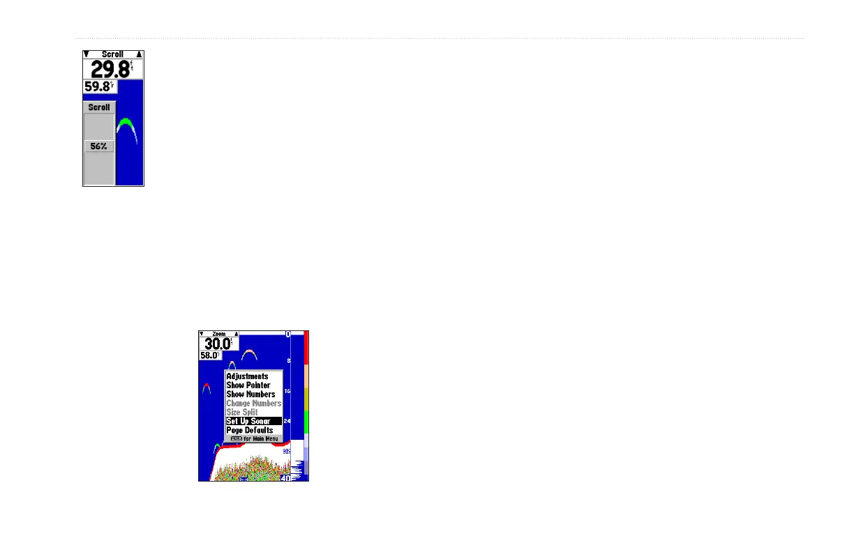 The GPSMAP 188/188C Sounder’s Sonar Page features a menu