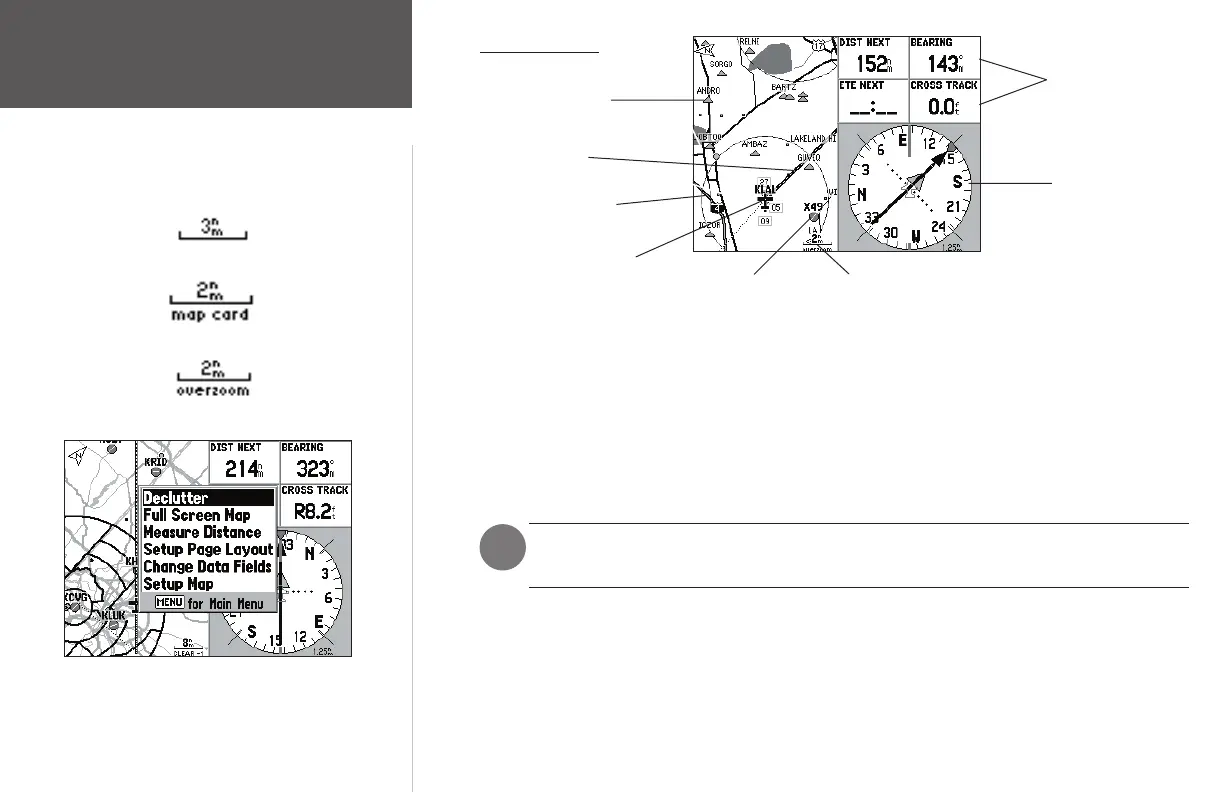 The Map page graphically displays your position relative to nearby airports, navaids, airspace