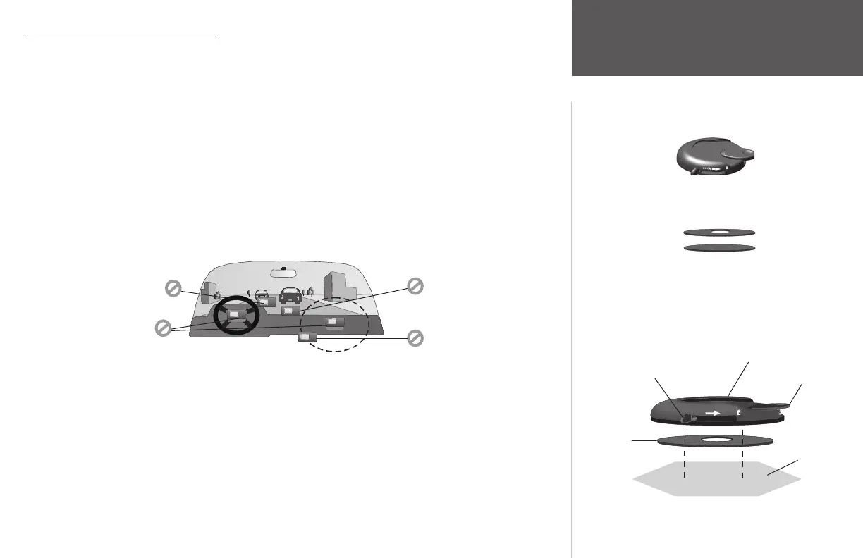 unit. If you plan to acquire satellites through the vehicle windshield, select a location where the unit