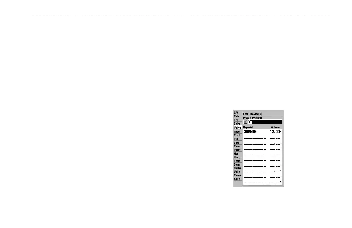 The Proximity list allows you to define an alarm circle around a