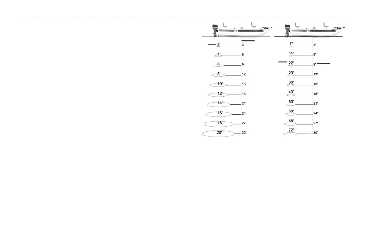 by the cone angle of the transducer and the water depth. The wide
