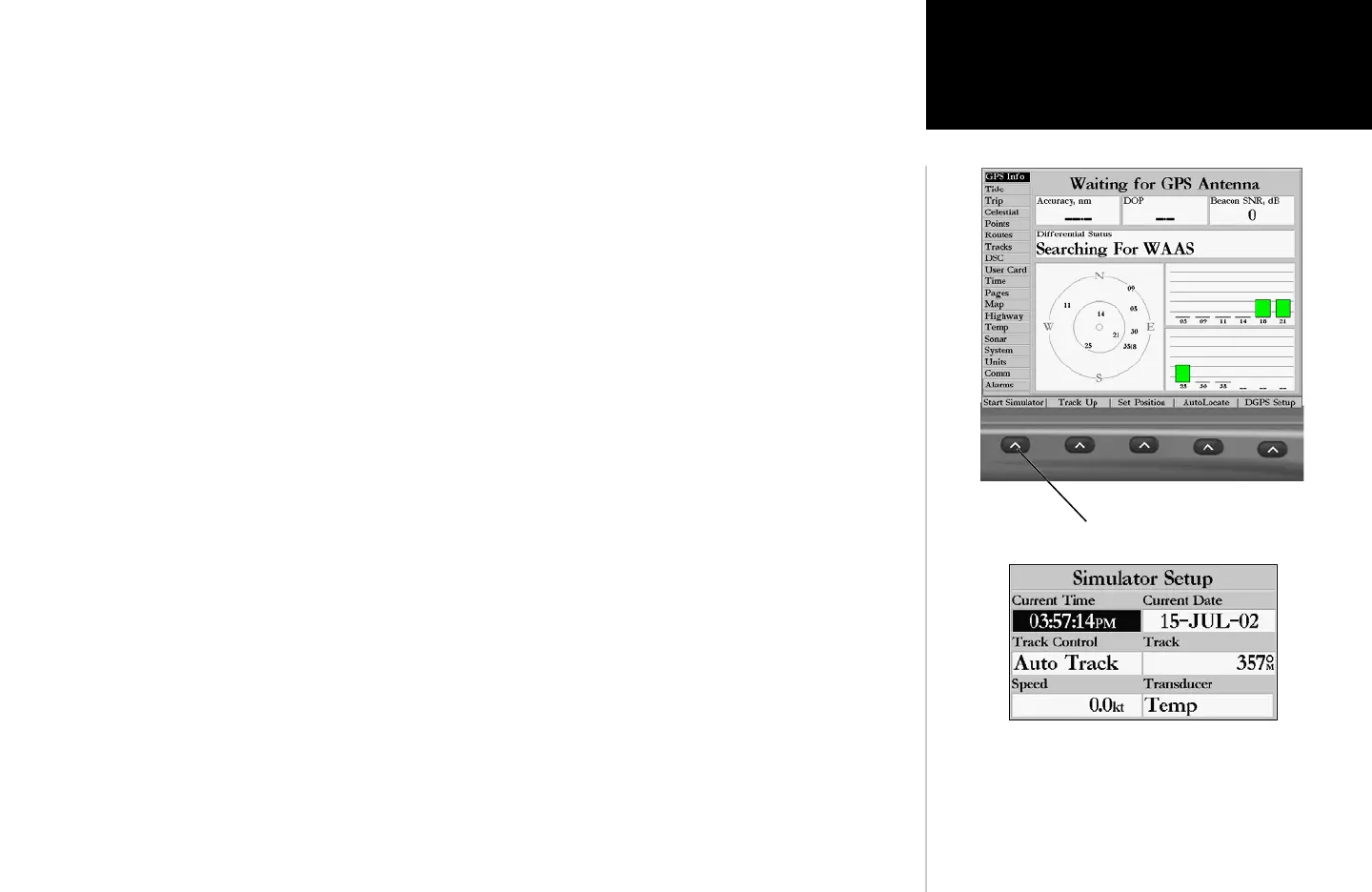 press ENTER/MARK. Press ENTER/MARK again to acknowledge the Running Simulator/Sonar Message.