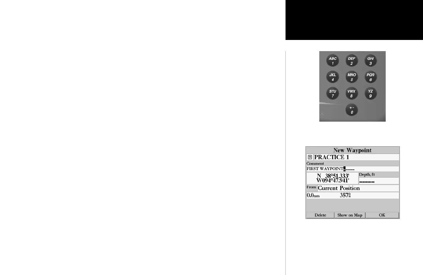 We will enter a new waypoint name using the DATA ENTRY keys. Each DATA ENTRY key has mul-