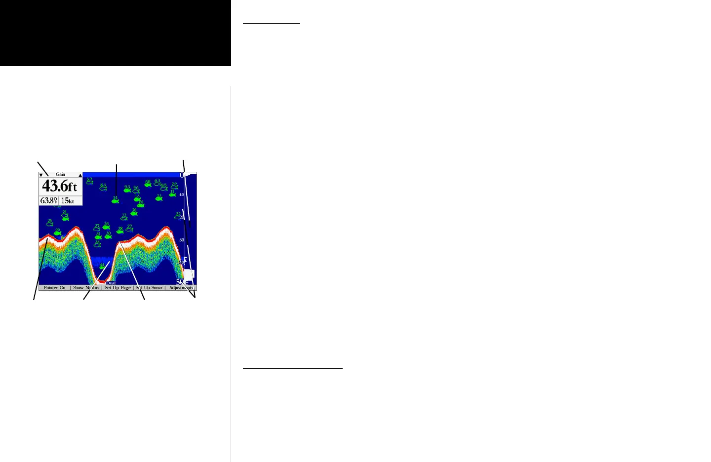 The Sonar Page is where your GPSMAP 2006/2010 becomes a powerful fishfinder. The top left of the