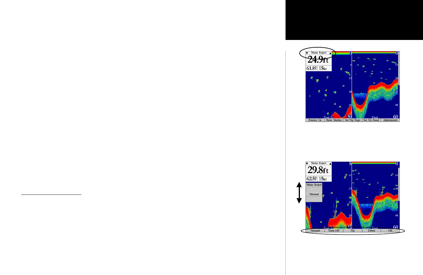 1. Range— sets the display depth range used for viewing. The unit can be set to automatically track