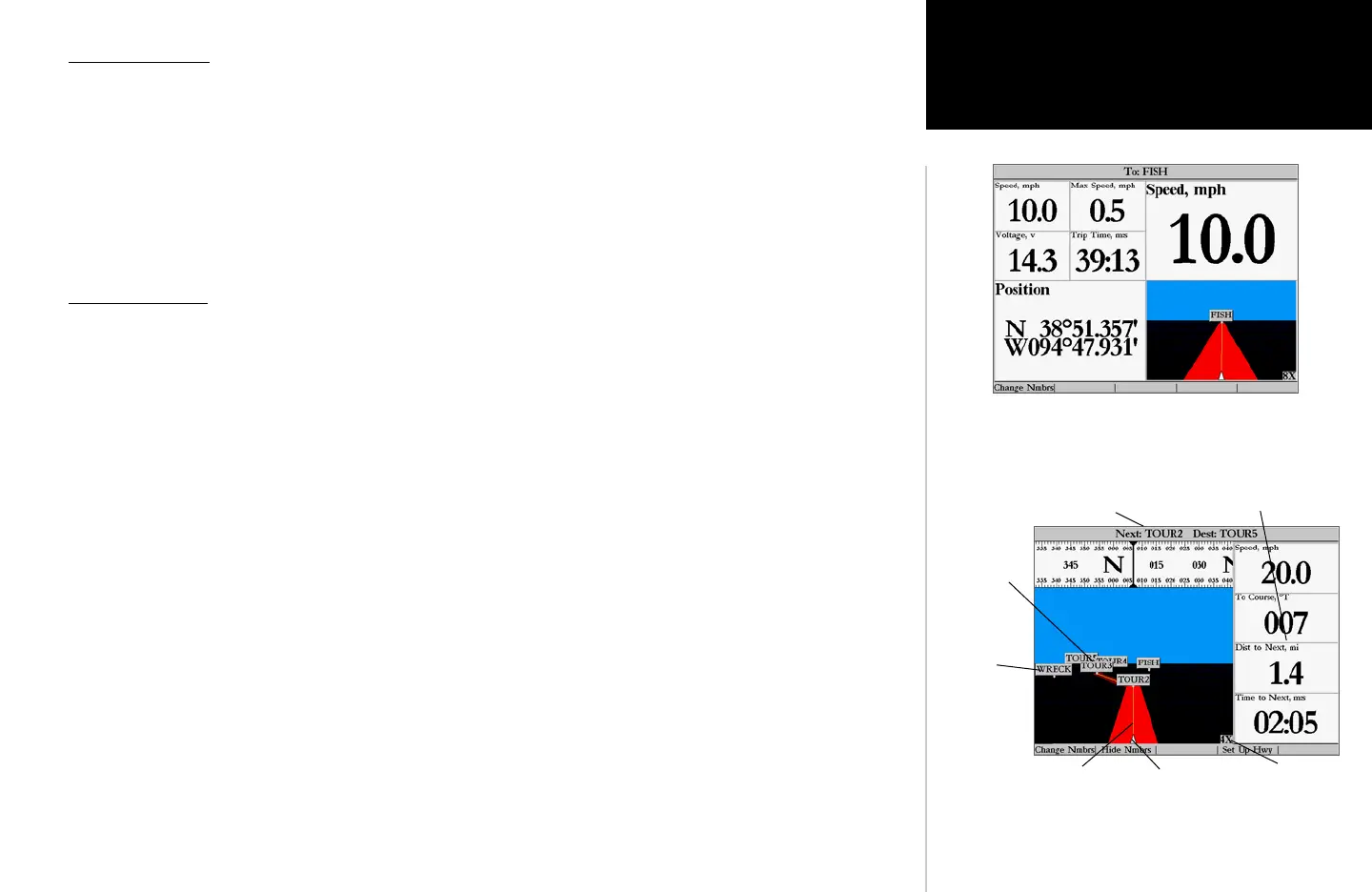 point. You can tell if you are off your desired track line by viewing the bottom section of the screen which