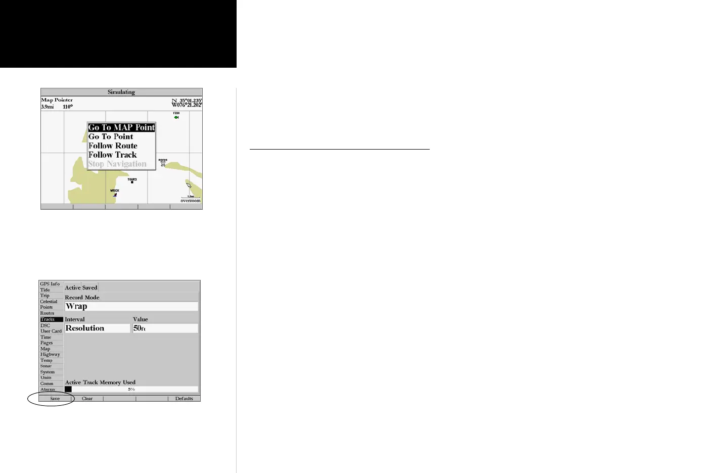 Press the ‘Save’ SOFT KEY to save an active track log.