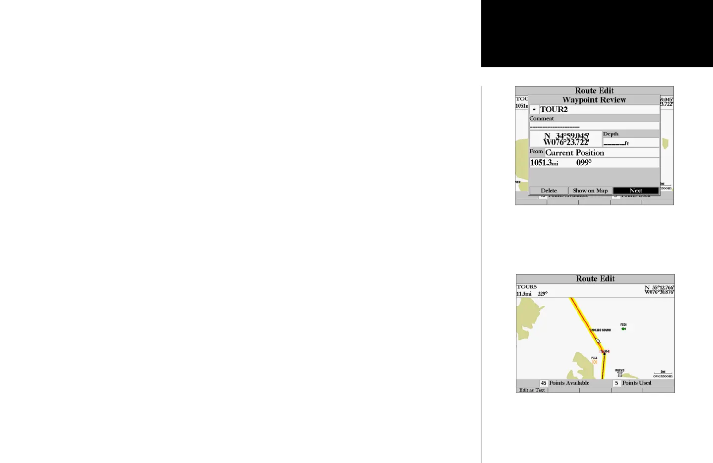 The GPSMAP 2006/2010’s route edit mode also allows you to insert a new route waypoint in any
