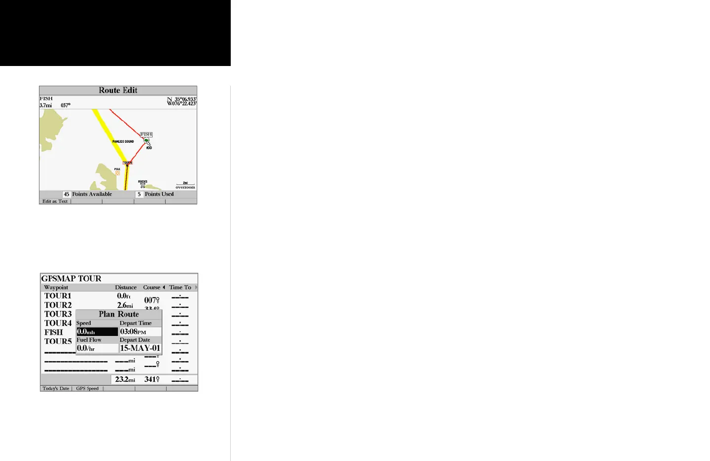 1. From either the Route Review or Active Route pages, use the ARROW KEYPAD to highlight the point
