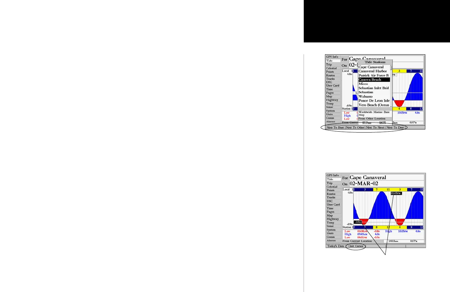 1. From the “Tide” tab, highlight the ‘At’ field and press ENTER/MARK.