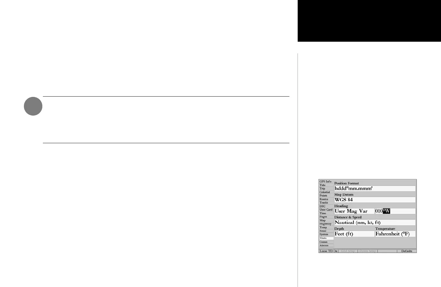 determine what position format, datum, heading and units of
