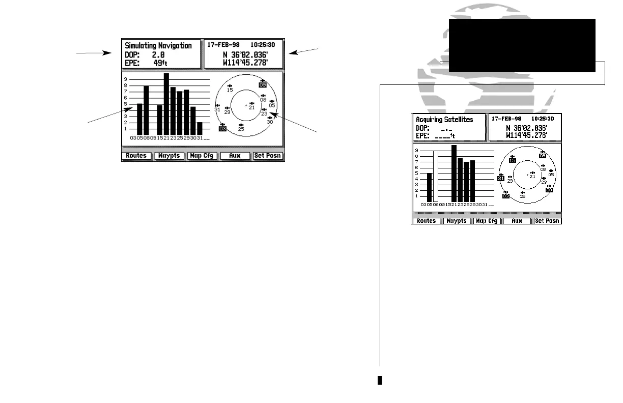 The GPSMAP 215/225 Satellite Status Page provides a visual reference of