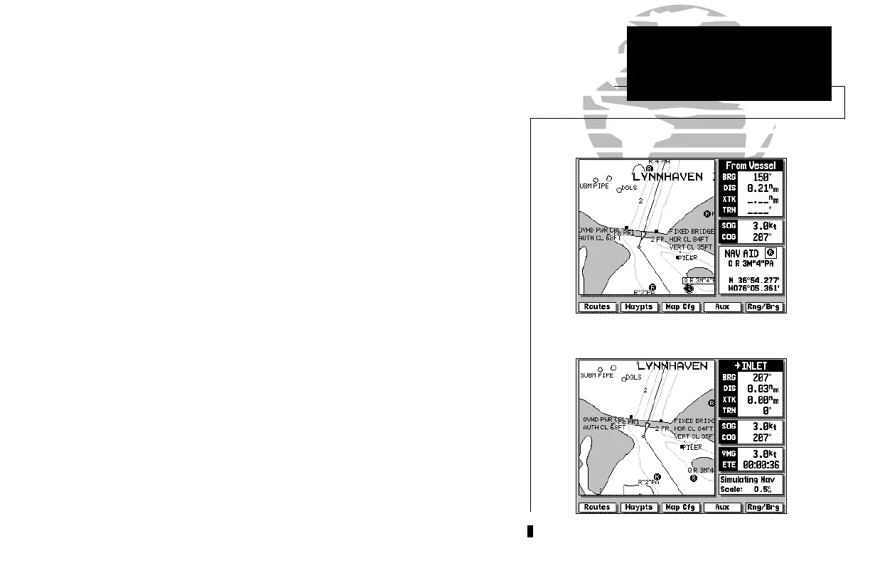 cursor is stationary, the distance and bearing from your present position will