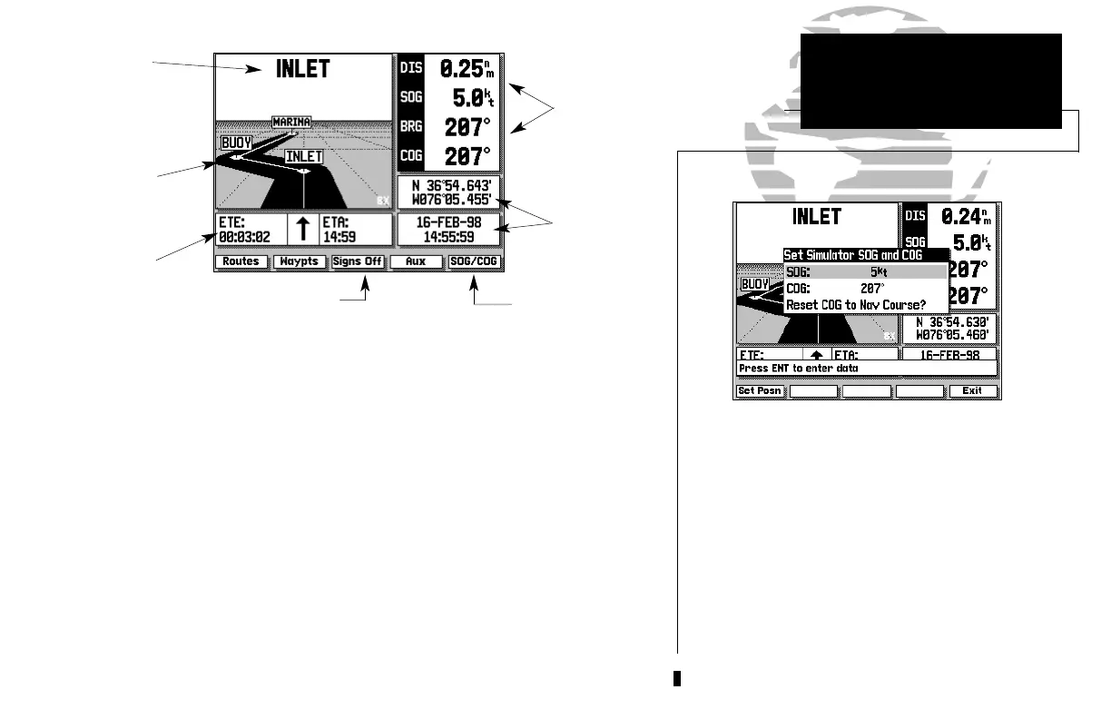 1. Press the B key. To return the display to SOG and COG, press B again.