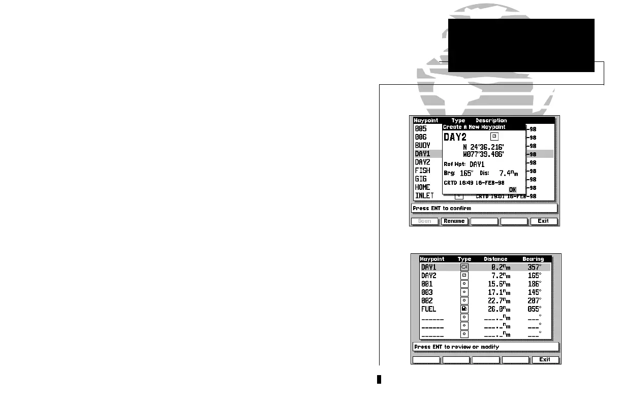 5. Highlight the OK prompt and press C to return to the waypoint list.