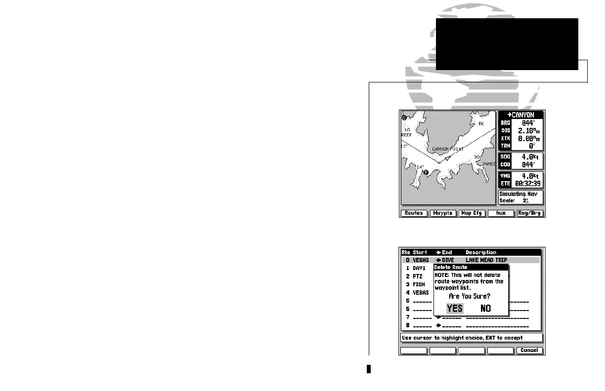 3. Press the C key to confirm the delete route warning.