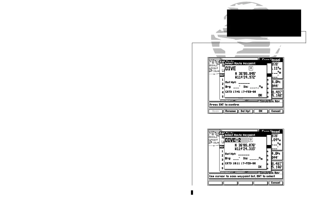 1. Select the Edit Route window using either method described on page 42.