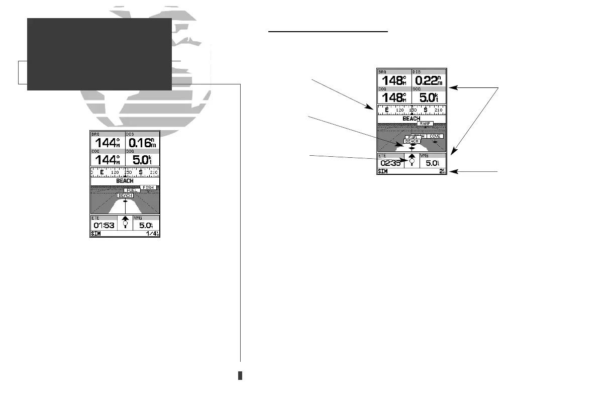 Whenever a GOTO, MOB, TracBack or route has been activated, the GPSMAP