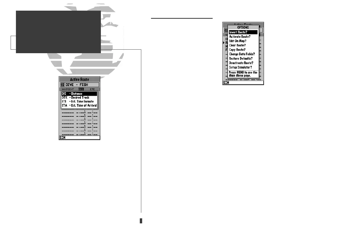 • Change Data Fields?— allows you to define the data displayed in the distance and